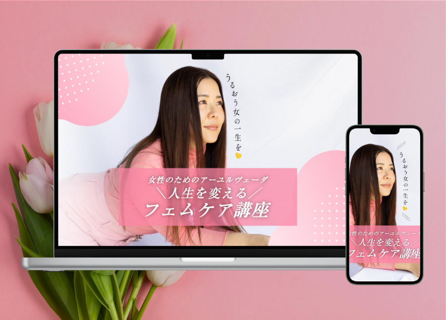 「女性のための癒しと学び」をテーマに、柔らかい女性らしいピンクを基調にし、女性らしさと安心感を表現。講座の魅力が伝わるよう、シンプルで直感的な構成にデザインしました。